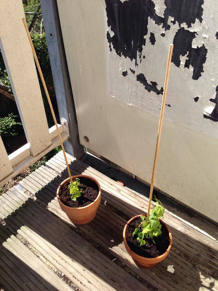 [stag_intro]In een pakketje opgevuld met kranten kwamen er vandaag twee Saphir hopscheuten binnen uit Duitsland. Het plan is om ze op te kweken op mijn Amsterdamse balkon en als alles goed gaat wil ik er in de herfst bier van brouwen.[/stag_intro]