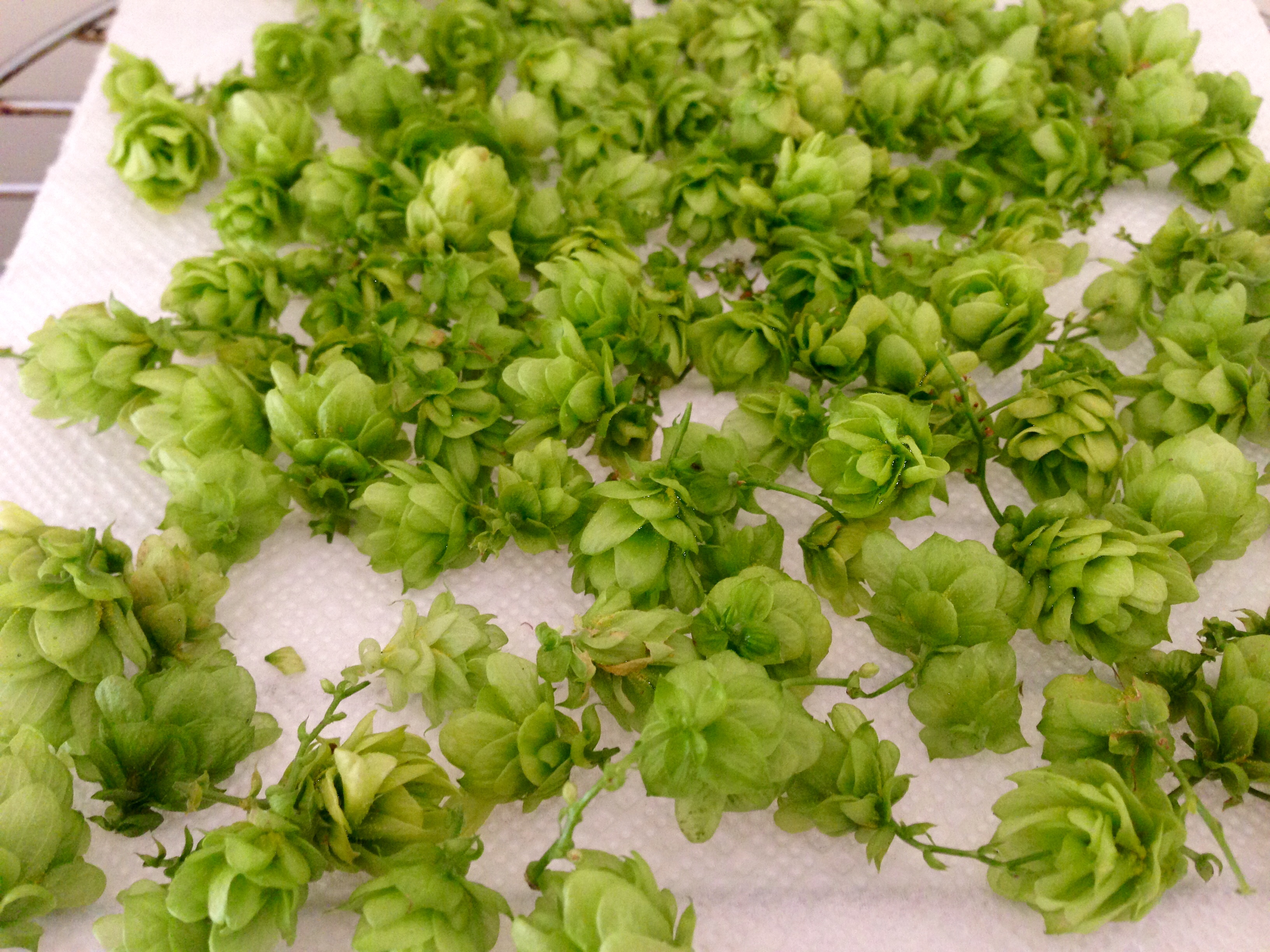 Al met al hebben de wortelstokken die in april binnen kwamen ongeveer 100 gram natte hop opgeleverd. Niet echt een rijke oogst, zeker niet als je ervan uitgaat dat ik de helft droog en er dan nog 80 tot 90 procent van het gewicht vervliegt.