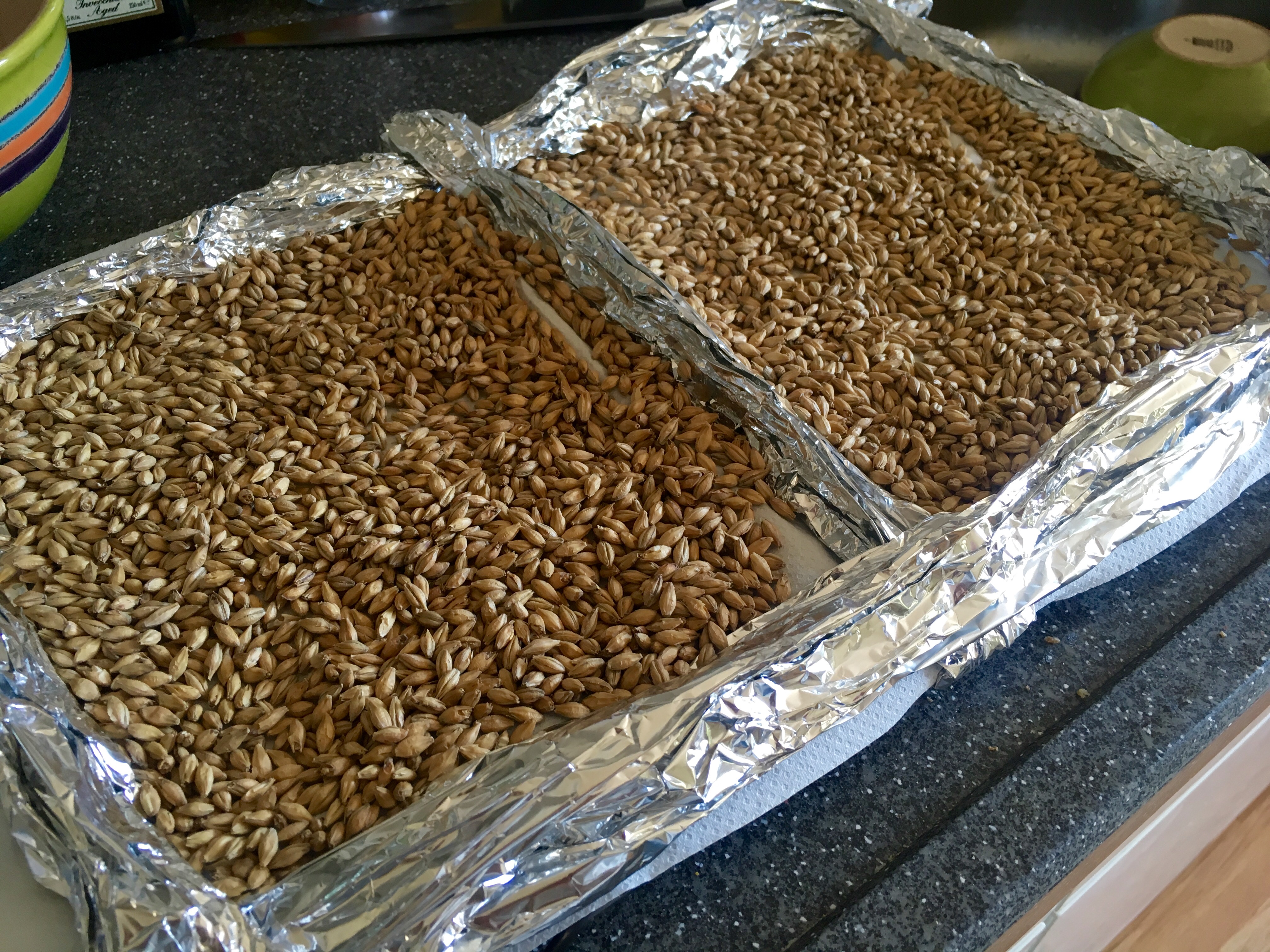 Ik ging voor twee keer 100 gram, waarvan een deel 20 minuten in de rook stond en het andere deel 60. Waarschijnlijk ga ik voor die van 20 minuten want ik wil het liefst een heel lichte rooksmaak, maar het is toch wel aardig om het verschil te proeven. 100 gram moet genoeg zijn voor een batch van 10 liter.